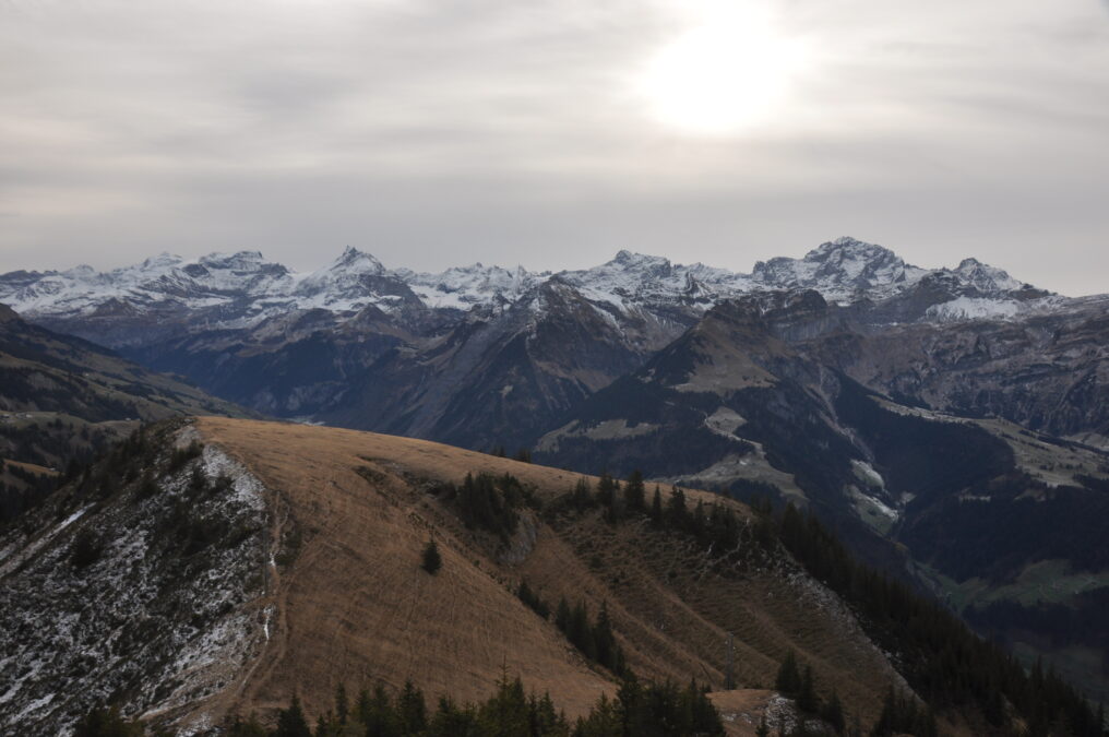 Abb. 1 Ausblick von der Hüenderegg auf Schärhorn und Windgällen