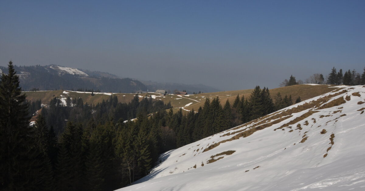 Der Frühling zieht zwar schon ins Land und das Mittelland ist bereits grün, die Wiesen übersäht von den ersten Frühjahrsblumen. Doch der Napf an vorderster Front hat noch einen weissen Überguss und reizt uns zu einer kleinen Schneeschuhwanderung. Wir starten in Hinterey südlich von Luthern Bad. Der Weg führt gegen Osten steil aus dem Tal zur Alp Trachsuegg hinauf. Unser Optimismus wird nicht belohnt. Schon kurz nach unserem Start müssen wir unsere Schneeschuhe wieder abziehen, die Sonne hat den meisten Schnee bereits weggeschmolzen. Auf Trachsuegg finden wir entlang der Hauswand die ersten prachtvollen Schneeglöckchen.