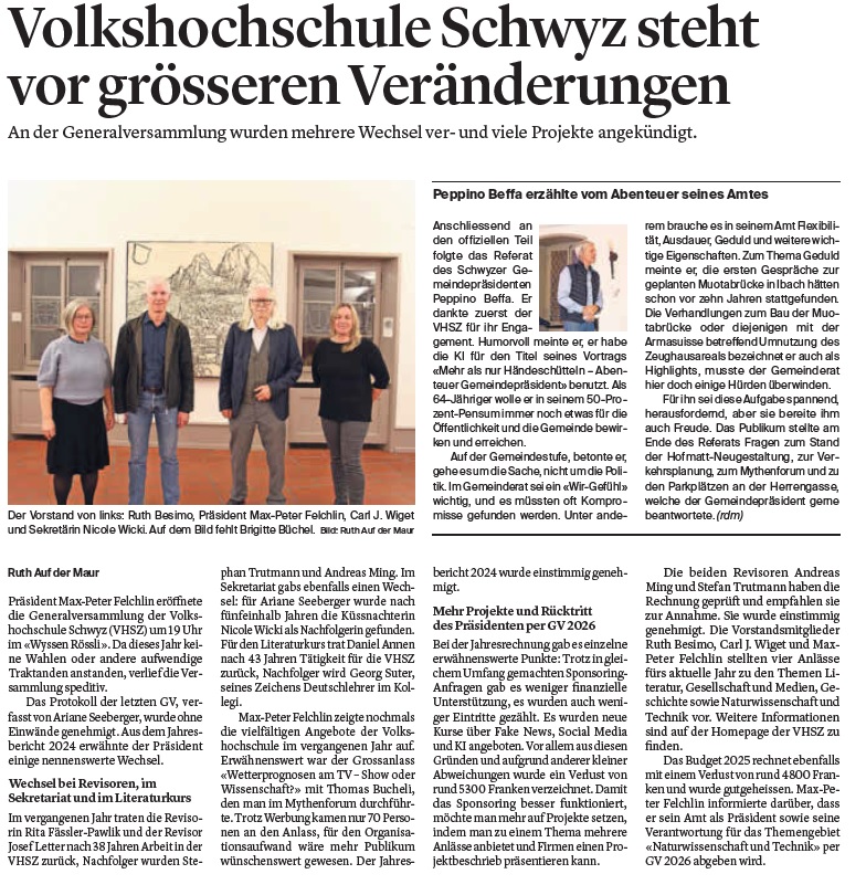 Zeitungsartikel Bote der Urschweiz vom 27.03.2025