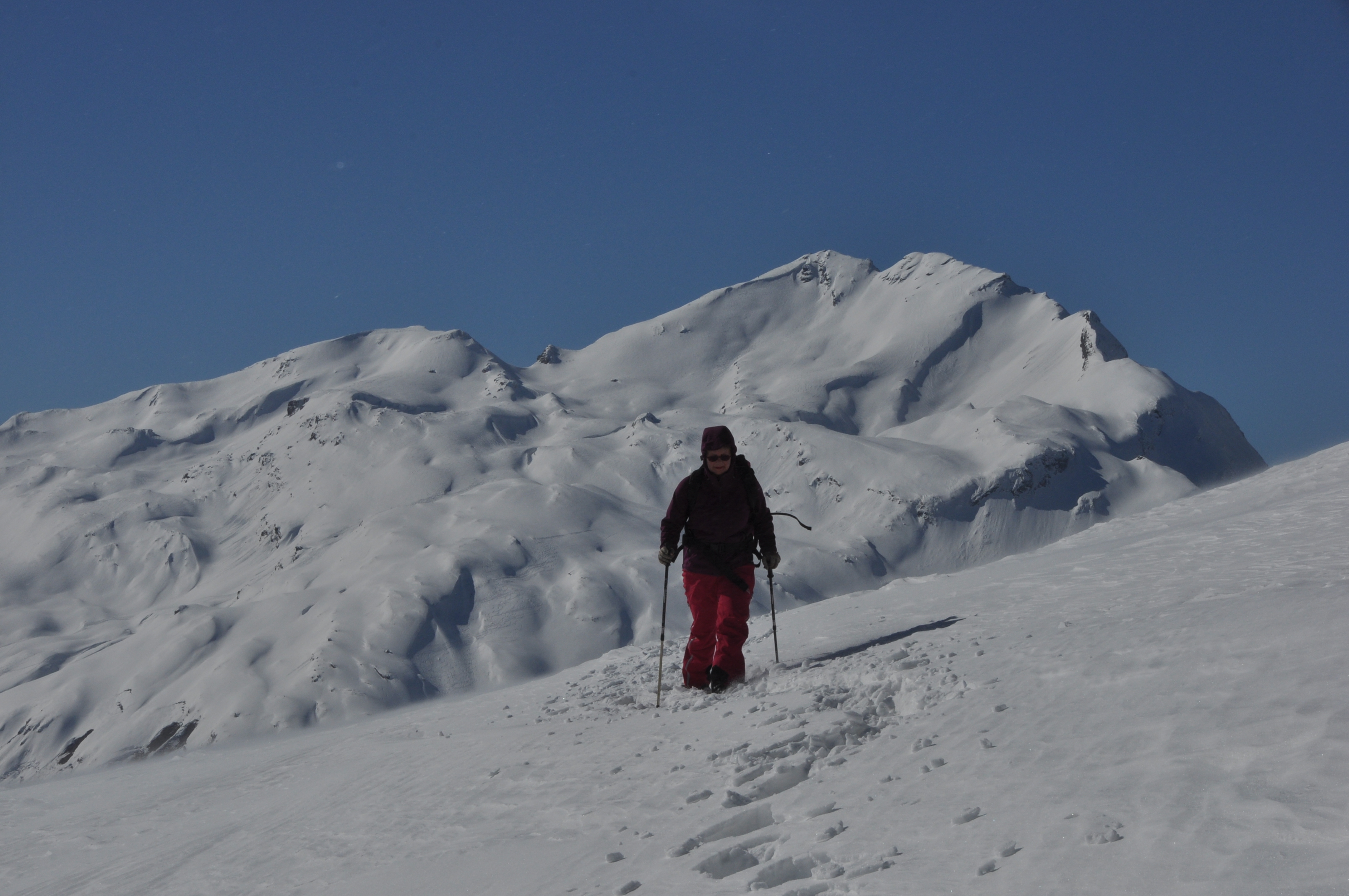 In Splügen erwartet uns tiefer Winter und strahlender Sonnenschein. Unser Lager haben wir in der Alten Herberge Weiss Kreuz aufgeschlagen, einem wunderschön hergerichteten historischen Hotel, das im oberen Teil des Dorfes hoch über dem Stutzbach liegt. Vom Speisesaal aus geniesst man bei vorzüglichem Essen eine herrliche Aussicht auf die Kirche und den alten Dorfteil oder auf den kunstvollen Flug der Bergdohlen über den tief verschneiten Dächern.