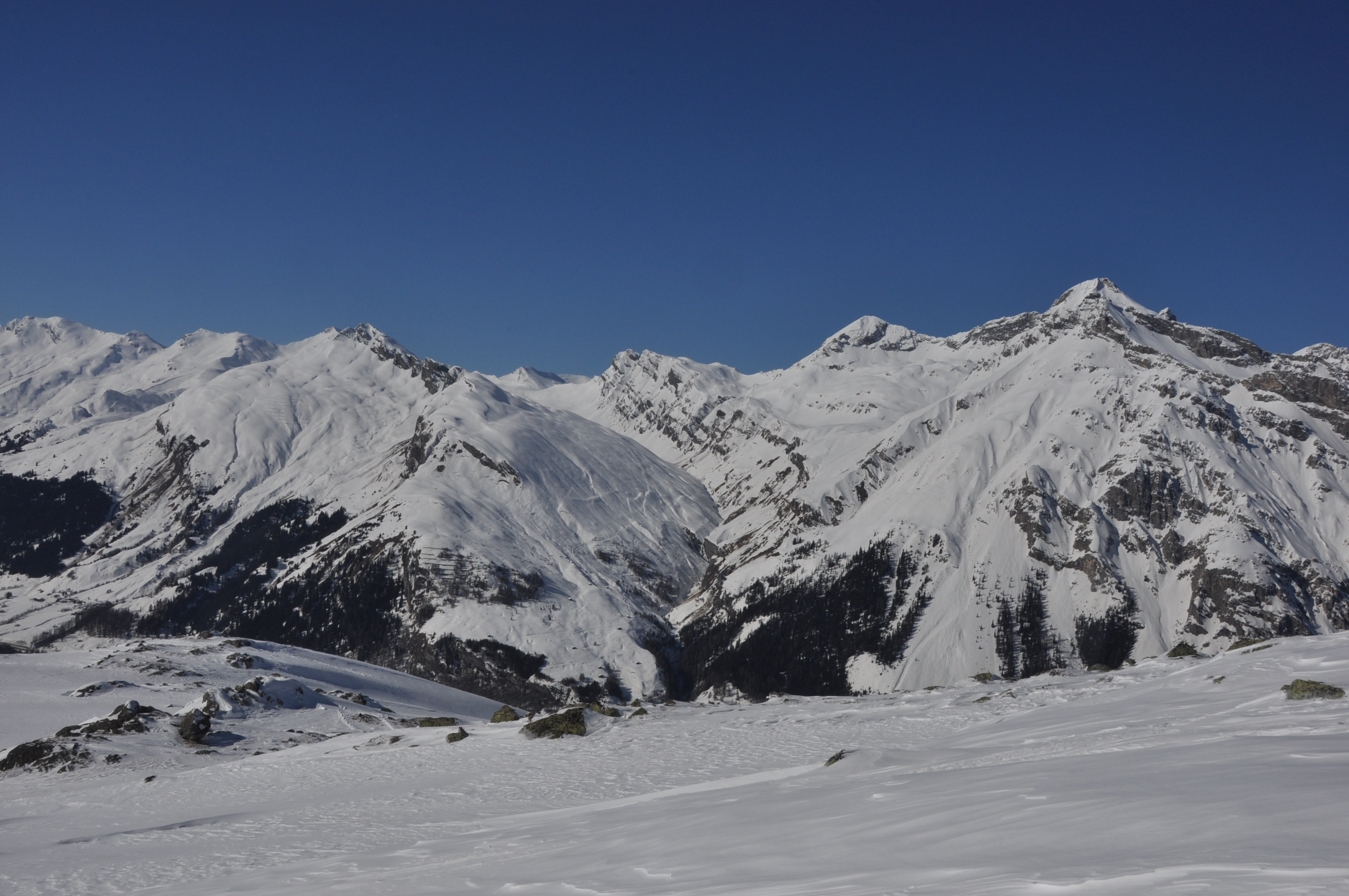 Abb. 1 Fluegrind mit dem Massiv der Surettahörner