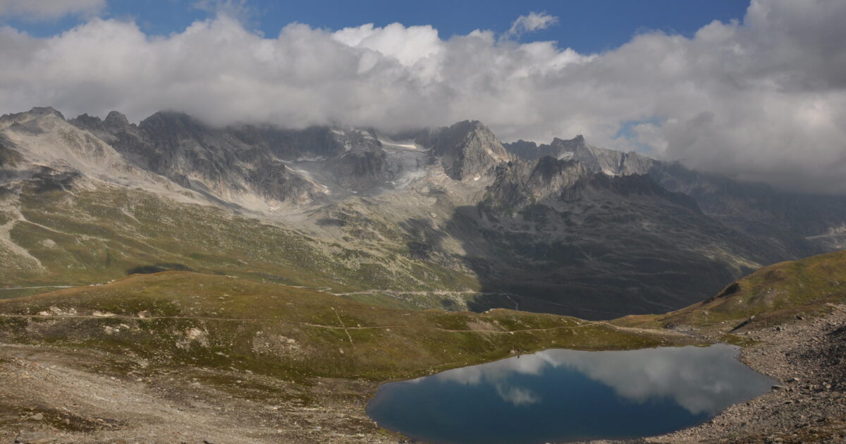 Kaum haben wir den Pass verlassen, umgibt uns eine friedvolle Stille – kein Mensch weit und breit. Bei der Abzweigung des alpinen Verbindungsweges zur Rotondohütte SAC (weiss-blaue Markierung) wenden wir uns vorerst gegen Nordosten in Richtung der Schattmigen Firsten (Abb. 2). Bevor die Pfadspuren hangaufwärts führen, steigen wir nach Osten ab, um die Schattmigen Firsten zu umgehen. So gelangen wir auf der nächst tieferen Hangschulter zu einem kleinen postglazialen See, der zwischen Hang und talseitig zurückgelassener Moräne des Muttengletschers liegen geblieben ist.